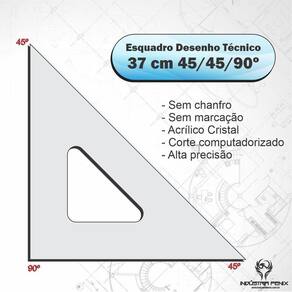 Características : Ângulos dos esquadros : 45/45/90º Tamanho : 37 cm Espessura : 2mm padrão desenho técnico Adicionas : sem chanfro e sem marcações Marca : fenix
