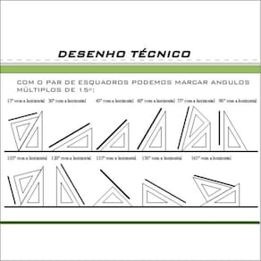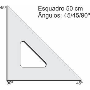 Características : Ângulos dos esquadros : 45/45/90º Tamanho : 50 cm Espessura : 2mm padrão desenho técnico Adicionas : sem chanfro e sem marcações Marca : fenix