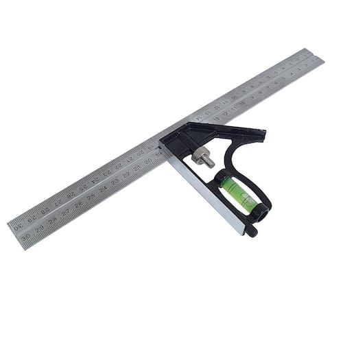 Esquadro Combinado em Aço inox 12 Polegadas 30cm com Nível gravado em Baixo Relevo. Indicado para marcações de ângulos retos em ferramentarias, usinagens, marcenarias, indústrias, entre outros.