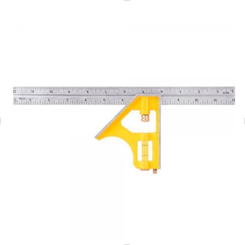 Possui corpo/base em alumínio fundido e régua deslizante em aço inox, proporcionando maior resistência. Números da escala gravados em baixo relevo, facilitando a leitura e conferindo maior vida útil. Além de permitir medir ângulos de 45° e 90°. Acompanha riscador. Indicado para marcações de ângulos retos em ferramentarias, usinagens, indústrias, entre outros. Possui exatidão de ± 1°. Importante certificar se o parafuso de ajuste está bem apertado.