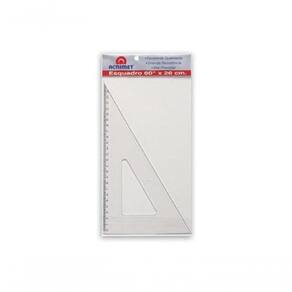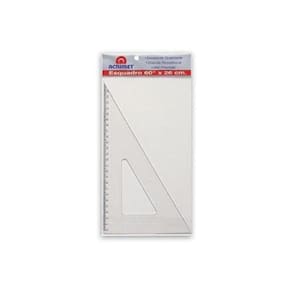 Esquadro em poliestireno, com escala gravada por transferência de imagem, garantindo alta precisão.