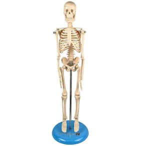 Modelo de torso confeccionado em resina plástica semi-emborrachada. Composto por:Cabeça subdividida com parte craniana, corte no osso occipital expondo cérebroEpiglote Laringe Esôfago Cartilagem tireóide Traquéia Dois pulmões Coração Aorta Artéria e veia pulmonar Fígado com vesícula biliar Estômago Intestinos grosso e delgado Metade do rim com glândula adrenal Baço com pâncreas Músculos trapézio, deltóide, tríceps, grande dorsal, glúteo máximo Embalagem: Comprimento x Largura x Altura:28 cm x 14 cm x 10 cm Peso: 1,22 kgEsqueleto articulado de 45 cm que possibilita observar a composição óssea do corpo humano.