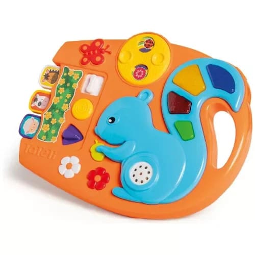 Painel Infantil Interativo - Esquilo Musical - Azul - TaTeTi Brinquedos: teclado musical com elementos auditivos e visuais para estimular todos os sentidos do bebê! Além de divertir o seu bebê, irá ajudar nos seus principais sentidos. Toca várias melodias diferentes, que fazem as teclas brilharem quando tocadas. Tem muitos animaizinhos, peças girando, as crianças poderão apertar, ouvir, girar e aproveitar de diversas funções diferentes para estimular seus sentidos!Detalhes:• 5 melodias diferentes• Teclas com cores e luzes• Elementos de ação surpresa (gira, desloca e aperta) • Adesivos e elementos tampografadosInformações:• Produto: Painel Interativo Esquilo Musical• Marca: TaTeTi Brinquedos• Coleção: Esquilo Musical• Tipo: Painel Interativo Musical• Categoria: Brinquedos para Bebês• Subcategoria: Brinquedos Eletrônicos e Musicais• Conteúdo: 1 Esquilo Musical • Recomendação: para bebês a partir de 06 meses de idadeEspecificações:• Referência: 0230• Código de Barras: 7898664632476• Embalagem (C x A x L): 33 x 28 x 09 cm• Embalagem (Peso): 0.370 kg• Alimentação: 3 pilhas LR44• Material / Composição: Plástico• Registro: 005042/2021• Certificado: Órgãos Autorizados - OCP ´S (Organismos de Certificação de Produtos)Aviso: • As imagens são meramente ilustrativas• Os pesos, tamanhos e medidas são aproximados• As cores e estampas dos produtos podem ter variações• As informações são de responsabilidade do fabricante ou fornecedor