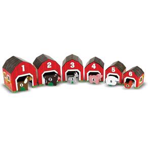 Pegue seis ninhos e blocos de triagem, adicione seis animais numerados para entrar, e o que você tem? Uma fazenda cheia de empilhamento, contagem, esconde-esconde, mistura e jogo, jogo imaginativo! Este charmoso conjunto de peças permite que as crianças construam uma cena de fazenda cheia de celeiros vermelhos brilhantes, com um animal para cada celeiro. Em seus painéis dianteiros, os celeiros apresentam portas dimensionadas para caber seus ocupantes animais; na parte de trás, uma cena colorida mostrando o animal em um ambiente ao ar livre. As crianças também podem emparelhar números nos celeiros e animais para montar os pares corretos, reforçando conceitos de aprendizado precoce enquanto brincam. Por mais de 30 anos, a Melissa & Doug criou produtos de imaginação e criatividade muito bem projetados que a NBC News chamou de "o padrão ouro na peça infantil". Projetamos cada brinquedo para os mais altos padrões de qualidade, e para nutrir mentes e corações. Se seu filho não está inspirado, ligue para nós e vamos fazer isso direito. Nosso número de telefone está em todos os produtos!