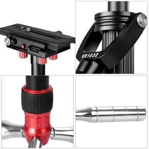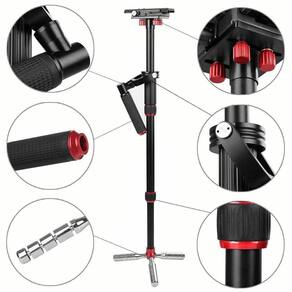 Estabilizador Gimbal Steadicam Kingjoy Vs1032 Handheld Profissional Vídeo Até 5Kg O Estabilizador Gimbal Steadicam Kingjoy VS1032 Handheld Profissional Vídeo é um sistema de estabilização portátil de vídeo projetado para reduzir a vibração e estabilizar as imagens em Câmera DSLR, Câmera Mirrorless e Filmadoras com peso de 1kg até 5kg. Ele é para criar movimentos fluidos em sua Câmera, mesmo ao caminhar ou correr, para acompanhar a ação, tornando a gravação de vídeo suave e sem tremer. Portátil e Compacto seu comprimento estendido é de até 110cm e mínimo de 62cm, possui Nivelador de bolha e pesa apenas 1.58kg, tornam-no a escolha perfeita para longos períodos de filmagem.Esta Gimbal Handheld Kingjoy VS1032 não é apenas um estabilizador portátil, mas também atua como um monopé para uso, com a vara de equilíbrio estendida. O estabilizador portátil elimina a necessidade de tripés ou dollys, dando aos fotógrafos ou videomakers a capacidade de criar imagens profissionais suaves enquanto a câmera está em movimento.O Gimbal multi eixo pelo Steadycam Kingjoy VS1032 isola a câmera de oscilações e movimentos de torção incidentais. A placa de base vem com uma Placa de Liberação Rápida Quick Release com parafusos de 1/4, para montagem e desmontagem rápida e fácil da Câmera de Vídeo, com botões de ajustes fino para ajudar a atingir o equilíbrio ideal, também apresenta o recurso de segurança de bloqueio duplo Kingjoy que ajuda a garantir que a câmera não caia acidentalmente.O Corpo deste Steadicam Kingjoy VS1032 Handheld é feito de alumínio e sua Alça Handle é revestida com borracha para torná-la mais confortável de segurar enquanto é operada, além de dar ao usuário mais controle sobre os movimentos do estabilizador. Quatro contrapesos segmentados estão incluídos, os quais são aparafusados em soquetes na parte inferior do Estabilizador Portátil Steadicam, proporcionando compensação de peso ao longo de dois eixos. Cada contrapeso consiste em quatro peças separadas que se aparafusam, permitindo adicionar ou remover peso ao longo de dois eixos conforme necessário. Isso facilita o equilíbrio do equipamento da câmera, mesmo quando o peso está distribuído de maneira desigual.Principais Características: Fácil de operar, fácil de transportar e muito prático. Design multifuncional, não é apenas um estabilizador de mão, mas também atua como um tripé ou monopé para obter disparos múltiplos. As peças principais são feitas de liga de alumínio de alta resistência. Comprimento estendido é de até 110cm e mínimo de 62cm, pesa apenas 1.58kg e suporta equipamentos de 1Kg até 5Kg Suporte para ajustar livremente o sistema de balanceamento para posicionamento preciso e estabilização de imagem. Rolamentos de alta precisão e baixo atrito e handle bar conjunta para proporcionar o melhor equilíbrio dinâmico. Livre-montagem contrapesos de acordo com suas necessidades, para oferecer o melhor imagens de balanceamento dinâmico. Placa de Liberação Rápida Quick Release atualizada com parafusos de 1/4 , para qualquer Câmera DSLR, Câmera Mirrorless e Filmadoras. Acompanhada de Bolsa de Transporte e 4 Contrapesos para sua base