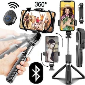 não há necessidade de usar o timer da câmera do telefone para tirar fotos, basta pressionar o botão no controle. Você pode retirar o controle do bastão e desfrutar de controle da foto á distância. Rotação completa de 360 graus: