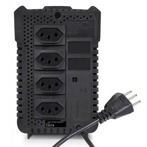 Topologia: Estabilizador de tensão Potência: 300 VA ou W Tensão entrada: Bivolt automático 115/127/220V Tensão saída: 115V Fator de potência de saída: 1 Conexão de entrada: Plugue NBR 14136 Conexão de saída: 4 tomadas NBR 14136 Filtro de Linha Fusível: Interno Microprocessador: Microprocessador RISC de alta velocidade com memória Flash Função TRUE RMS Sinalizações: Sinalização para rede normal, subtensão, sobretensão e sobrecarga. Botão liga/desliga Temporizado para evitar desligamentos acidentais e/ou involuntários Proteções para a carga: Ruído de rede elétrica; Sobretensão de rede elétrica; Subtensão de rede elétrica; Surtos de tensão na rede; Correção de variação da rede elétrica por degrau. Proteções do estabilizador: Sobreaquecimento, sobrecarga e curto-circuito Tempo de : 4 anos (1 ano + 3 anos mediante )