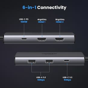 - Estação de ancoragem USB C 6 em 1: inspire mais potencial da porta USB-C do seu laptop com duas portas HDMI, uma porta USB-C PD de 100 W, uma porta de dados USB-C de 5 Gbps e duas portas de dados USB-A.