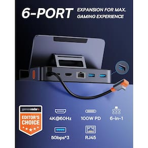- Solução tudo-em-um para o Steam Deck: nossa docking station de design 6 em 1 para Steam Deck inclui 1 porta HDMI, 3 portas USB3.0, 1 porta RJ45 e 1 porta PD tipo C, fornecendo opções perfeitas de conectividade e expansão para seu Steam Deck. E com um design de suporte ajustável, você também pode colocar sua plataforma de vapor nesta doca com um estojo protetor.