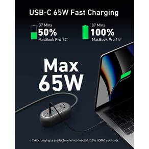 - Carregamento de alta velocidade: a saída USB-C de 65 W oferece energia suficiente para carregar uma ampla variedade de dispositivos, como telefones, tablets, laptops e muito mais. Carregue um MacBook Pro de 14 polegadas a 50% em apenas 37 minutos.