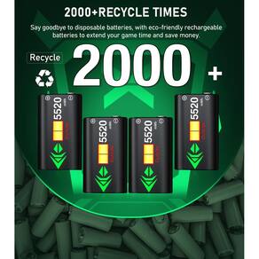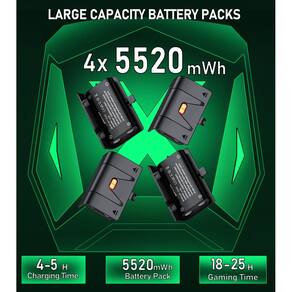 Estação de carregamento para xbox one bateria recarregável com 2 pilhas 4800aWH Compatibilidade: Para Xbox Series X, controle Xbox Series S Para Xbox One, Xbox One X, Xbox One S, Xbox One Elite Controller Características: 1. Base de carregamento de alta velocidade com 2 baterias recarregáveis de 4800 mWh para xbox one 2. Carregamento de alta velocidade de 4 a 5 horas e 20 a 25 horas de uso prolongado 3. Recarregável até 2000 vezes, bateria de longa duração 4. Ampla compatibilidade, adequado para todos os seus controles Xbox one/série. 5. Carregador de controle sem fio, fácil de usar, basta soltar e começar a carregar. 6. Indicador LED em forma de X para informar o status de carregamento Especificações: Tensão de entrada: DC 5V/1A (não inclui adpter) Tempo de carregamento: 4-5 horas Tempo de reprodução: 20-25 horas Capacidade da bateria: 2 x 4800mWh Tempos de carregamento da bateria: mais de 2000 vezes Observação: 1. Use as baterias incluídas na estação de carregamento para obter um melhor desempenho de uso e proteger seu controle. 2. Depois de instalar a bateria no controle Xbox, não toque a parte metálica da bateria com outros metais, exceto o compartimento de carregamento na estação. Conteúdo da embalagem: 2 baterias recarregáveis de 4800 mWh. 1 estação de carregador de controlador. 1 cabo de carregamento tipo C. 4 capas traseiras de bateria. 1 x manual do usuário (idioma português não garantido) - ?Aviso?Observe que as outras 2 baterias estão localizadas na parte inferior da base de carregamento do Xbox. Você pode acessá-los facilmente abrindo a tampa. - ?Bateria de 2 x 5520 mWh para controle Xbox?O pacote inclui bateria de controle Xbox One de 2 x 5520 mWh, o pacote de baterias recarregáveis para controle Xbox One oferece 15 a 20 horas de tempo de reprodução, mas só precisa de 4 a 5 horas de tempo de carregamento. Com dois compartimentos de bateria e capacidade de bateria atualizada para prolongar seu tempo de jogo e nunca perca um segundo de jogo - ?Indicadores LED e luz de atmosfera verde?Há dois indicadores LED na parte frontal da estação de carregamento Xbox. A luz verde para o status está totalmente carregada e, quando começa a carregar, ficará vermelha. Há uma luz de atmosfera verde na parte inferior do carregador Xbox, que combina muito bem com o console Xbox e o controle, mas não incomodará seu jogo ou descanso - ?Compatível com todos os seus controles Xbox?A base de carregamento do controle para o pacote de baterias Xbox One é projetada para Xbox One, Xbox One X, Xbox One S, Xbox One Elite, Xbox Series X, Xbox Series S. O kit de carregador e bateria para controle Xbox está equipado com 4 capas traseiras de bateria do controle, 2 para X1/X/S/Elite e 2 para Xbox Series S e Xbox Series X. Atende a uma série de controles Xbox One dos jogadores para carregar as necessidades - ?Mais de 2000 tempos de recarga de bateria recarregável?Quantas vezes você teve que interromper seu jogo porque as baterias descartáveis acabam repentinamente e quanto dinheiro economizaria para dizer adeus ao uso de pilhas AA? Nossa bateria recarregável de 4800 mWh para Xbox One pode ser recarregada mais de 2000 vezes, e há 2 portas de carregamento e 2 pilhas, você sempre pode se preparar para o seu jogo. Diga adeus às baterias descartáveis para economizar seu dinheiro e tempo - ?Sistema multiproteção? Carregador de controle X1 e pacote de bateria integrados com um sistema de proteção múltipla, protege seus controles de sobrecarga, sobrecorrente, superaquecimento e curto-circuito. Recomendamos desconectar a fonte de alimentação após uma carga completa