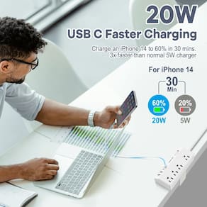 Faixa de energia com braçadeira de mesa com proteção contra sobretensão, cabo de extensão de plugue plano de 3 m, 4 tomadas CA + 4 portas USB, carregamento rápido USB C de 20 W para iPhone iPad, protetor contra sobretensão de montagem de borda de mesa para casa, escritório - Todos os tipos de plugue de alimentação incluídos em um – Combinamos 4 tomadas CA (1250W, 10A) e 4 portas USB (1 USB-C de 20W, 1 USB-C e 2-USB A compartilham 5V/3,1 A no total) nesta régua de alimentação de grampo de mesa, vários tipos e quantidades de plugue para atender a todas as suas demandas de carregamento - Entrega de energia de 20 W para iPhone, iPad – Esta porta USB C deste protetor contra picos de energia foi especialmente criada para usuários de iPhone e iPad, ajudando-os a carregar rapidamente seu iPhone ou iPad com velocidade 3x mais rápida em comparação com o carregador normal. (Compatível com séries iPhone 8 para iPhone 15, iPad Pro, iPad Air, iPad Mini) - Cabo de extensão de 3 m, ampla compatibilidade – o filtro de linha USB com cabo de 3 m de comprimento que certamente é longo o suficiente para alcançar qualquer tomada em seu escritório ou casa. Estação de carregamento multi-plugue para computador, laptop, iMac Pro, Macbook Pro/Air, iPad, iPhone, Airpods Pro, iWatch, Samsung Galaxy/Note, fones de ouvido, etc - Faixa de alimentação com braçadeira de mesa, ampla compatibilidade - o grampo pode suportar espessura de mesa de até 4,6 cm e com superfície lisa para proteção de mesa durante a instalação sem arranhões. E o grampo é removível, você pode removê-lo e usar o filtro de linha acima apenas com a chave de fenda incluída - Organizador de mesa, arrumador – Organize todos os seus dispositivos carregando em uma estação de carregamento de régua de energia, deixe sua mesa mais limpa e arrumada. E você pode prendê-lo na mesa para consertar e evitar quedas irritantes. Uma decoração de energia e espaço para mesa, casa, escritório, quarto, mesa de cabeceira, dormitório, hotel, etc