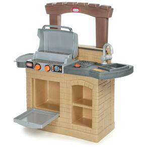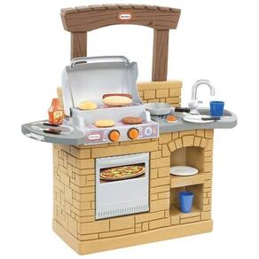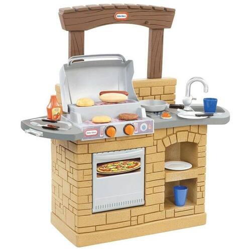 Porta do forno funcionando Cavilhas moldadas para pendurar utensílios de cozinha e panelas Clicar nos botões na grade faz sons divertidos Pia e fogão moldados para maior dramatização criativa Espaço de balcão estendido e contador de volta para muita preparação de jogo Grelha de dois níveis, como as reais Marca: Não Informado