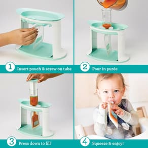 Infantino Estação de compressão para alimentos caseiros para bebês, estação de enchimento de bolsas para purê de alimentos para bebês e crianças, pode ser lavada na lava-louças e livre de BPA - Preparação pura sem esforço: Simplifique a preparação da comida do seu bebê com nossa inovadora unidade de prensa e loja, projetada para ajudar os pais a armazenar facilmente purês caseiros puros e saudáveis para seus pequenos - Conveniência na ponta dos dedos: inclui 5 bolsas de compressão reutilizáveis, garantindo que você esteja sempre pronto para a hora das refeições ou lanches em movimento - Design amigável ao usuário: nosso processo de 4 etapas (inserir e parafusar, despejar, pressionar e apertar) é muito fácil de seguir. Os tubos transparentes apresentam linhas de medição para o porcionamento adequado - Fácil de preparar o lote: com a capacidade de encher 3 bolsas de compressão simultaneamente, nossa estação simplifica sua preparação de alimentos, economizando tempo e mantendo sua geladeira abastecida com purês nutritivos prontos para comer - Sem bagunça e estável: possui uma base antiderrapante para manter a unidade estável durante o uso, evitando derramamentos e garantindo uma experiência suave e sem bagunça - Limpeza sem complicações: os tubos de enchimento seguros para lava-louças facilitam a limpeza, permitindo que você passe menos tempo na cozinha e mais tempo com seu bebê. Projetado para encaixar todas as peças de forma compacta, facilitando o armazenamento em sua cozinha