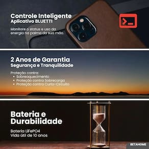 A Estação de Energia Portátil Bluetti AC2P oferece potência de 300W e capacidade de 230Wh, atendendo dispositivos essenciais em qualquer situação. Possui bateria LiFePO4 de longa duração com mais de 3.000 ciclos, pico de 600W e carregamento turbo de 270W que atinge 80% em apenas 45 minutos. Pode ser carregada por tomada, painel solar, carro ou gerador. Pesa apenas 3,6kg, facilitando o transporte. Conta com tela LCD, controle via aplicativo e funcionamento seguro e silencioso.