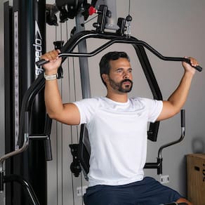 DestaquesExercícios de fortalecimento para o corpo todoRealize mais de 40 opções de exercícios contando com as estruturas de Polia Alta, Polia Baixa, Leg Curl, Supino e Peck Deck. Complete ainda mais seu treino com o Leg Press opcional.Estrutura robusta, de alta qualidade e durabilidadeA Multi 3 é produzida em aço tubular robusto e possui pintura eletrostática a pó, mantendo sua durabilidade e acabamento perfeito por muito mais tempo. Conforto e segurança para seus treinos de forçaAlém de possuir ajuste de altura e angulação no banco, para se adaptar a diversos usuários, a Multi 3 ainda conta com banco acolchoado de alta densidade, além da pegada emborrachada e pontos de apoio para pernas e braços acolchoados. Sistema de carga variávelDe forma muito prática, varie a intensidade e a carga do seu treino. Conte com o sistema de cargas ajustáveis, chegando a até 70 kg. Alie os ajustes de carga aos acessórios para treino barra reta e barra pulley/tríceps.Para quem é a Estação de Musculação Speedo Multi 3 S/ Leg Press?Excelente custo-benefício para uma Estação de alta qualidade e bem completa, tanto para residências quanto para condomínios, studios e hotéis. Ideal para usuários de diversos níveis de prática, tanto iniciante, quanto avançado.Ficha técnica:Modelo: Multi 3Marca: SpeedoMedidas: 198 x 127 x 209 cmCarga máxima total: 70 kgPeso máximo do usuário: 115 kgPeso do produto: 165 kgMaterial: Estrutura de aço tubular robusto e pintura eletrostática a pó.Medidas da embalagem: 5 volumes: 195 x 68 x 25 cm / 105 x 99 x 14 cm / 186 x 25 x 20 cm / 38 x 19 x 21 cm / 38 x 19 x 17 (CxLxA)Peso do produto na embalagem: 174 kgItens inclusos: 1 Estação de Musculação Speedo Multi 3 e 1 jogo de ferramentas para montagemGarantia: 3 meses cabos e rolamentos, 2 anos estrutura e 1 ano demais partes