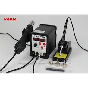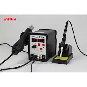 Características: Estação de retrabalho solda 898D 2 em 1 SMD , é a versão melhorada da 878 séries e herdou todas as vantagens. Corpo em metal com alta qualidade, concha em silicone fornecendo maior economia de energia e elegante aparência. Você pode usar a arma de ar quente e o ferro de solda separadamente, sem interferir um com o outro. Circuito de controle do microcomputador adotado da SAMSUNG, garantindo rápido aquecimento, controle preciso e estável da temperatura. Adequado para a montagem e retrabalho SMD. Duplo display digital em LED vermelho. Com informações da pistola de ar quente e a temperatura do ferro de solda. Ruído extremamente baixo e design com economia de espaço. Ferro de solda com saída de 50 watts e faixa de temperatura de 200 °C a 480 °C. Facilidade no ajuste do fluxo de ar e controle de temperatura e rotação. Design do ferro de solda ESD para proteger componentes sensíveis. Função de arrefecimento Inteligente para prolongar eficazmente a vida útil do aquecedor e a pistola de ar quente. Aquecedor com padrão internacional para facilitar o uso e troca se necessário. Adequado para SOIC, CHIP, QFP, PLCC, BGA e componentes sensíveis à temperatura. Suporte plástico para colocar a pistola de ar quente. Suporte para manter o ferro seguro de materiais inflamáveis. Ajustes para encolher aquecimento, secagem, remoção de verniz, remoção de viscosidade, pré-aquecimento e solda cola. Design seguro do ferro de solda para proteger componentes sensíveis aprovado pela CE. Especificações: Voltagem: 110v Consumo total de energia: 700 Watts Fluxo de ar: Ventilador sem escova com soft Air Volume Maximo do fluxo de ar: 120L / min Arma de ar quente: 500 Watts - Faixa de temperatura de 100°C a 480°C Auto Arrefecimento Ferro de solda: 50 Watts Faixa de Temperatura: 200°C a 480°C Estabilidade temperatura do ferro de solda: ± 3.6 ° F / 2.0 ° C Temperatura ambiente de trabalho: 0°C a 50°C Itens inclusos: Cabo de energia Manual em português Ferro de solda Suporte ferro de solda 3 bicos Prazo de entrega Produto a pronta entrega para o envio imediato para todo Brasil. O prazo informado é contado a partir da data do envio. Garantia 03 Meses de garantia.