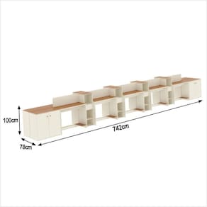 Cor: Multicolorido | Fabricante: Via Nossa | Produto: Estação de Trabalho 10 Lugares Smart Office | Tonalidade: Varias | Peso do Produto: 287,35 | Cômodo Indicado: Escritorio | de Lugares: 10 | Material: MDP | de Portas: 8 | Formato da Mesa: Retangular | Possui Prateleiras: 8 | Possui Gavetas: 8 | Acabamento: Pintura UV | Certificado de Teste Externo: Nada Consta | Dimensões do Produto: Altura X Largura X Comprimento: 100 x 78 x 742 CM | Marca: Via Nossa | Baterias?: Não | Componentes Inclusos: Nada Consta | Numero do Modelo: Nada Consta | Numero de Partes: Nada Consta | Numero de caixas: 24 | Requer Montagem: Sim | Peso da Embalagem: 287,35 | Numero de Itens: 24 | Caracteristicas Principais #1: Estação de Trabalho | Caracteristicas Principais #2: 10 Lugares Smart Office | Caracteristicas Principais #3: 8 Armários e 4 Aparadores