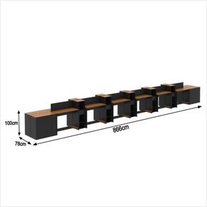 Altura da Mesa (cm): 74cm | Altura do Armário (cm): 99cm | Altura do Aparador (cm): 74cm | Largura da Mesa (cm): 91cm | Largura do Armário (cm): 33cm | Largura do Aparador (cm): 77cm | Profundidade da Mesa (cm): 38cm | Profundidade do Armário (cm): 28cm | Profundidade do Aparador (cm): 38cm | Altura dos Pés (cm): Não se aplica | Ambiente Principal: Escritório | Complexidade da Montagem: Média: pode ser montado por mais de uma pessoa e/ou necessite de maior conhecimento para montagem | Cor do Produto: Off White/Cedro | Cor Predominante: Off White | Cor Interna: Off White | Acabamento: Pintura UV | Acabamento da Gaveta: Pintura UV | Acabamento dos Pés: PVC | Escala de Brilho: Fosco | Escala de Brilho da Gaveta: Fosco | Garantia: 3 meses | Bandeja: Não | Estilo: Moderno | Itens Inclusos: 12 Mesa, 10 Armário, 4 Aparador, Manual de Montagem e Kits de Montagem | Linha ou Coleção: Tech | Inclui manual de montagem: Sim | Possui Portas: Sim | Possui Rodízio: Não | Marca: ViaNossa | Material da Gaveta: MDP/MDF | Material dos Pés: PVC | Cor: Preto e Cedro