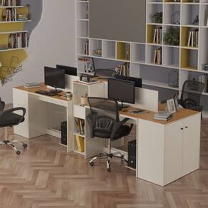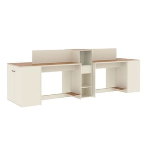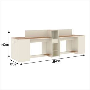 Estação de Trabalho 4 Lugares Office Smart 4 Mesas 2 Armários 2 Aparador - Off White