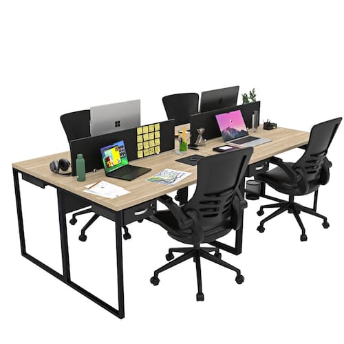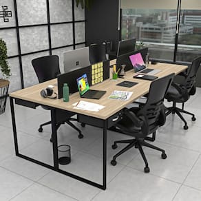 Invista no bem-estar da sua equipe com a estação de trabalho estilo industrial de 4 lugares com gavetas da Linha de Estações de Trabalho da Netmobil.