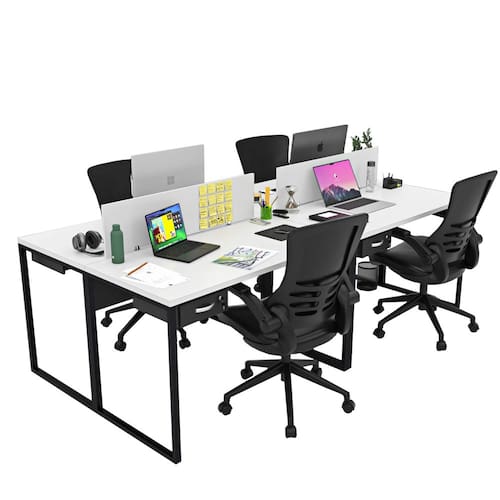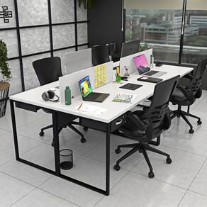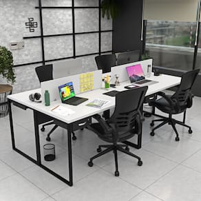 Invista no bem-estar da sua equipe com a estação de trabalho estilo industrial de 4 lugares com gavetas da Linha de Estações de Trabalho da Netmobil.