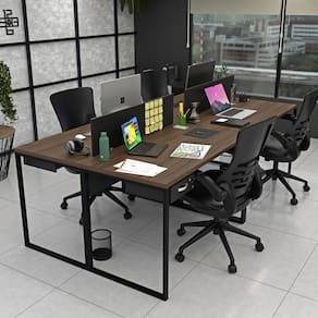 Invista no bem-estar da sua equipe com a estação de trabalho estilo industrial de 4 lugares com gavetas da Linha de Estações de Trabalho da Netmobil.