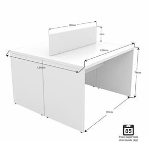 Peso suportado (distribuídos por mesa): 85kg (tampo).