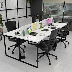 Invista no bem-estar da sua equipe com a estação de trabalho estilo industrial de 4 lugares da Linha de Estações de Trabalho da Netmobil.