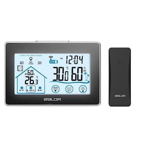 Estação Meteorológica Lcd Digital Sensor Wireless Higrômetro Estacao metereologica baldr wireless Esta estacao meteorologica sem fio digital de medicao de umidade de temperatura interior / exterior tem tres botoes de toque. Voce pode definir tudo apenas tocando nos tres botoes na tela do relogio. Um sensor remoto sem fio esta incluido para detectar a temperatura e a umidade exteriores. Voce pode tocar o botao para verificar a temperatura maxima / min / temperatura atual e a umidade sempre que quiser. Ele tambem contem icones para lembra-lo das mudancas de umidade para mais umido / sem mudanca / mais seco. O indicador de nivel de conforto exibe visualmente o status de conforto. Quando voce o usa de noite, voce pode pressionar o botao de luz na parte superior. A luz de fundo branca acendera por alguns segundos para que voce possa ver com clareza.