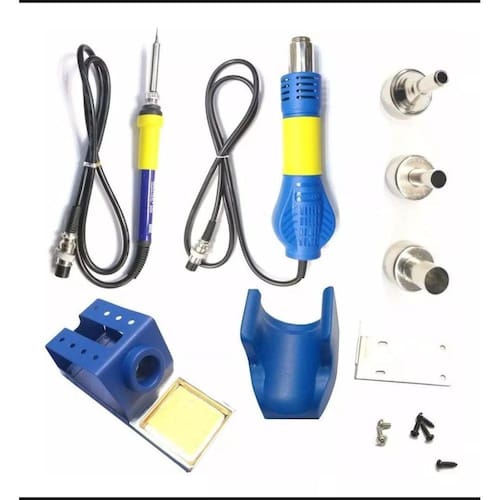 Características: - estação de solda e retrabalho - yaxun 881d; - estação completa e compacta; - uso industrial profissional; - ferro de solda; - soprador de ar quente; - painel de controle individualizado; - 1 display digital para amostragem da temperatura do soprador; - 2 knobs menores para ajuste do soprador de ar (vazão e temperatura); - 1 knob para ajuste da temperatura do ferro de solda; - 2 chaves on/off independentes; - suporte para ferro de solda com esponja vegetal; - suporte para soprador de ar; - 3 bocais diferentes para soprador de ar; - 1 pinça / extrator para chips smd; - estrutura com revestimento antiestático; - garantia legal de 90 dias (contra defeitos de fabricação). Especificações: - marca: yaxun; - modelo: 881d; - dimensões: ~17 x 14 x 10cm (cxlxa); - consumo de potência geral: ~750w; - acompanha 1 pinça extratora de chip smd; - peso com embalagem: ~2800g. Soprador de ar quente: - temperatura do ar quente: 100ºc a 450ºc; - potência de consumo: 550w; - fluxo de ar: 0,3 - 120 l/min ajustável; - potência da bomba: 45w; - esd safe (proteção antiestática); - 3 bocais de diferentes tamanhos: ø 5,0 - 7,0 - 10,0mm. Ferro de solda: - temperatura do soldador: 200ºc - 480ºc; - potência de consumo: 50w; - tensão de alimentação 24v; - esd safe (proteção antiestática); - 1 suporte para o ferro de solda com esponja vegetal.