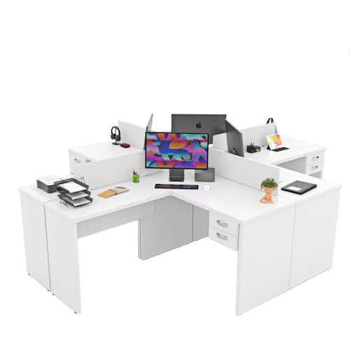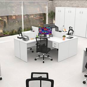 Invista no seu bem-estar e na sua equipe com a Ilha em L com gaveta da Linha Office Netmobil!