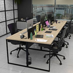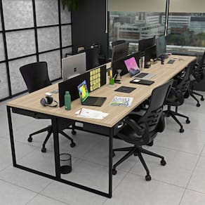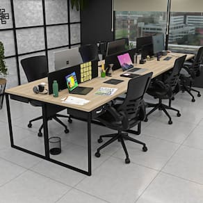 Invista no bem-estar da sua equipe com a estação de trabalho estilo industrial de 6 lugares com gavetas da Linha de Estações de Trabalho da Netmobil.