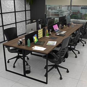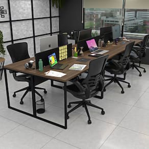 Invista no bem-estar da sua equipe com a estação de trabalho estilo industrial de 6 lugares da Linha de Estações de Trabalho da Netmobil.