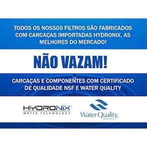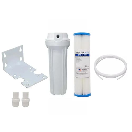 Carcaça de 10 polegadas com refil cartucho plissado de 50 micras. Inclui suporte, conectores e mangueira para instalação.Função retrolavagem