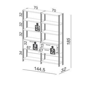 Dimensões: Altura: 185 cm Largura: 140 cm Profundidade: 32 cm Peso: 56,5 kg