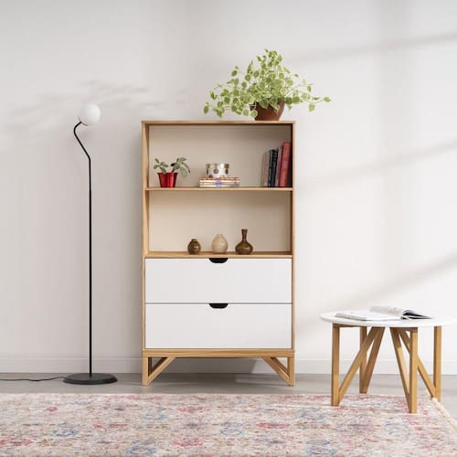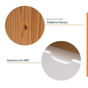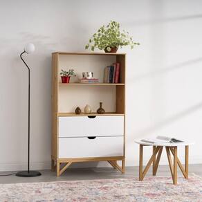 Com design retrô e traços lineares, a coleção Nina, traz conforto a diversos cômodos. Versátil e fácil de ambientar, a estante possui 1 prateleiras e 2 gavetas para deixar seu ambiente organizado e funcional, tem de madeira maciça e frentes de gaveta em MDF. Acabamento da Gaveta: Pintura UV Acabamento da Prateleira: Pintura UV Acabamento dos Pés: Pintura Altura dos Pés: 15 cm Altura Máxima dos Pés: 15.0000 Ambiente Principal: Sala de Estar codigo_ean: 7909903116289 Complexidade da Montagem: Média: pode ser montado por mais de uma pessoa e/ou necessite de maior conhecimento para montagem Cor: Amêndoa/Branco Cor do Produto: Amêndoa/Branco Cor Interna: Amêndoa Escala de Brilho: Semi-Fosco Escala de Brilho da Gaveta: Semi-Fosco Escala de Brilho da Prateleira: Semi-Fosco Gaveta com Chave: Não Itens Inclusos: 1 Estante, kit de ferragens e manual de montagem Linha ou Coleção: Nina Manual de Montagem e Instalação: https://product-hub-prd.madeiramadeira.com.br/792289/documents/b2e19d1d-caa8-4f25-be43-6c69304a2758d064444ESTANTE2GAVETASNINA.pdf Material da Gaveta: MDF Material da Prateleira: Madeira Maciça Material dos Pés: Madeira Maciça Material Principal: Madeira Maciça Necessita Montagem: Sim Origem do Produto: Nacional Peso: 27,85 kg Peso Máximo por Gaveta: 5 kg Peso Máximo por Prateleira: 26 kg Possui Espelho: Não Possui iluminação: Não Possui Pés: 04 Possui Portas: Não Possui Prateleiras: Sim Possui Rodízio: Não Possui Vidro: Não Quantidade de Gavetas: 02 Gavetas Recomendações de Uso, Manutenção e Limpeza: Usar pano macio, levemente umedecido com água.É possível o uso de detergente neutro, ou sabão neutro com água. Resistente à Chuva: Não Sapatas Niveladoras: Não Sistema de Montagem: Parafuso, cavilha e minifix Suporta Até (kg): 90 kg Tipo de Corrediça da Gaveta: Madeira Tipo de Madeira Maciça: Pinus Tipo de Madeira Maciça da Prateleira: Pinus Tipo de Madeira Maciça dos Pés: Pinus Tipo de Puxador da Gaveta: Embutido