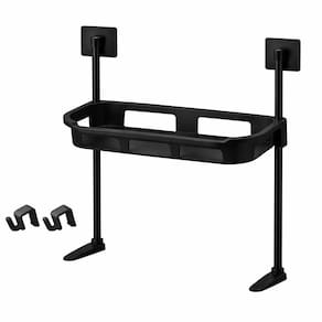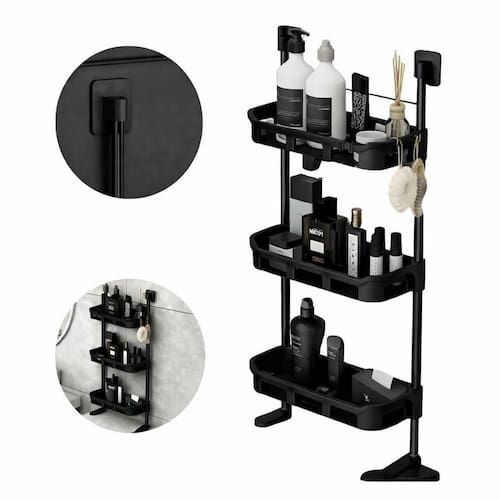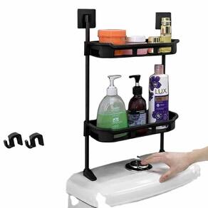 Com 3 prateleiras e ganchos para guardar objetos como shampoos, escova de dente, pasta dental, cremes, perfumes, temperos e outros produtos.