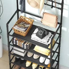 Estante 5 Prateleiras Arara Guarda Roupa Organizador Sapateira Cabideiro Gancho Rack Bolsa Sapateira Organizadora Multiuso com Cabideiro Suporte Mantenha seus sapatos organizados de forma prática e segura com esta sapateira organizadora multiuso. Ideal para qualquer ambiente da sua casa, como quarto, closet, varanda, sala ou entrada, ela traz uma solução eficiente para o seu dia a dia.