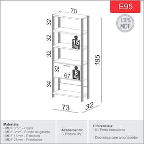 Possui 01 porta basculante e dobradiça com amortecedor.