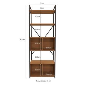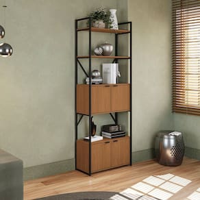 Organização e otimização com a Estante Alta com Portas LI018 da Linha Industrial Kappesberg. Medindo 2,02m de altura, 72cm de largura e 33cm de profundidade, combina desde a sala de estar, o quarto, escritório, área de lazer e até a garagem. Sua estrutura metálica é resistente, e pintada com tinta epóxi na cor preto fosco, garante maior durabilidade contra a umidade e um acabamento lindo. Os nichos, portas e prateleiras, em MDP de 15cm e acabamento touch na cor canela, com a textura dos veios da madeira, garantem amplo espaço para organizar livros, documentos, plantas, roupas, decorações e outros objetos. Seu reforço em X nas costas garante mais resistência, além de ser fácil de montar e ajustável em todos os pisos com as sapatas reguláveis. Produto Montado: Sim Acabamento da Porta: Pintura UV Acabamento da Prateleira: Pintura UV Acabamento dos Pés: Pintura Altura dos Pés: 0,1 cm Altura Máxima dos Pés: 0.1000 codigo_ean: 7900288245533 Complexidade da Montagem: Média: pode ser montado por mais de uma pessoa e/ou necessite de maior conhecimento para montagem Cor: Canela/Preto Fosco Cor do Produto: Canela/Preto Fosco Escala de Brilho: Fosco Escala de Brilho da Porta: Fosco Escala de Brilho da Prateleira: Fosco Itens Inclusos: 1 Estante, Manual de Montagem e Kit Ferragens Linha ou Coleção: Industrial Manual de Montagem e Instalação: https://product-hub-prd.madeiramadeira.com.br/479646823/documents/5089b133-2296-491d-802c-46cfd571f0f13243774544517591462751527.pdf Marca: Kappesberg Material da Porta: MDP Material da Prateleira: MDP Material do Puxador da Porta: Metal Material dos Pés: Polipropileno Material Principal: Aço Necessita Montagem: Sim Origem do Produto: Nacional Peso: 33,8691 kg Peso Máximo por Prateleira: 7 kg Possui Acabamento na Parte de Trás: Sim Possui iluminação: Não Possui Pés: 04 Possui Portas: Sim Possui Prateleiras: Sim Possui Rodízio: Não Quantidade de Nichos: 04 Recomendações de Uso, Manutenção e Limpeza: Limpeza com pano macio levemente umedecido. Não utilizar produtos abrasivos. Sapatas Niveladoras: Não Sistema de Montagem: Parafuso Philips Suporta Até (kg): 30 kg Tipo de Dobradiça/Corrediça da Porta: Metálica Tipo de Puxador da Porta: Externo