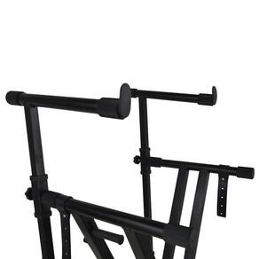 Com capacidade para dois teclados, esta estante é resistente e ajustável em altura e largura, permitindo o máximo de conforto e ergonomia para o músico. Com sistema de ajuste de largura por gatilho de pressão, é fácil de configurar a posição correta de uso. Seu design se adequa a qualquer ambiente.