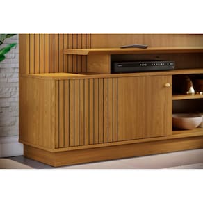 O Home Theater Ares, da marca Madetec, é ideal para TVs de até 75 polegadas. Produzido em MDP e MDF com revestimento em pintura UV, conta com 1 porta deslizante em MDF frisado, 2 prateleiras e puxador dourado pontual.