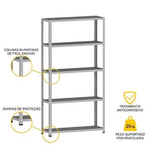 - Possui 5 prateleiras em chapa de aço 26 sem reforço com colunas resistentes confeccionadas em chapa de aço 18