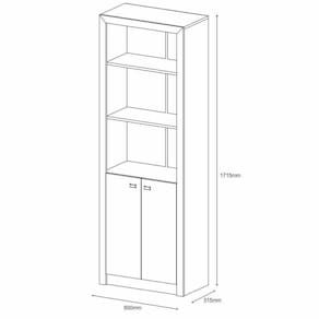 Característica da Estante Armário Alta Livreiro Multiuso Office 2 Portas: - Estrutura em MDP; - Acabamento em BP; - 2 portas; - Puxadores em plástico; - 5 prateleiras; - Cada prateleira suporta até 12kg; - Para uma limpeza mais efetiva, utilizar apenas pano macio umedecido e sabão neutro. Não utilizar produtos abrasivos. - Não acompanha objetos de decoração;