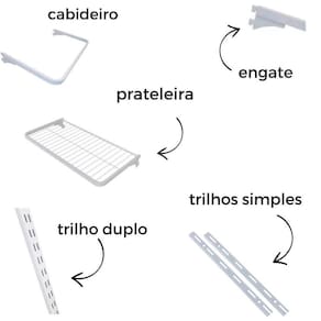 Este modelo é multiuso, muito adequado para quarto de crianças, bebê, quartinho da bagunça. O trilho graduado contribui para o fácil deslocamento das prateleiras desalinhando-as conforme a necessidade de se acomodar as coisas.