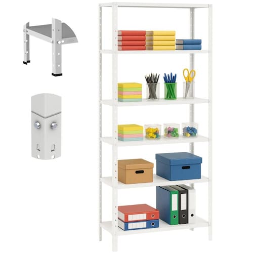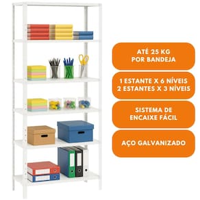 Produto de fácil montagem, com a simples colocação de porcas e parafusos unindo as bandejas às colunas. Perfeita para escritórios, papelarias, escolas, estoques de loja ou até mesmo ambientes residências.
