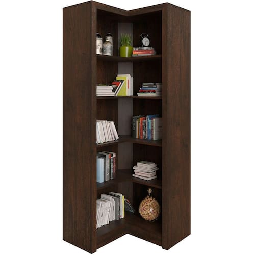 Estante Armário de Canto Aberto p/ Escritório 5 Prateleiras - Marrom