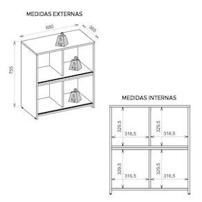 - Possui 2 Nichos - Possui 2 Portas Correr - Possui 4 Mini Sapatas - Amplo espaço de Armazenamento