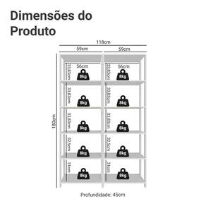- Duas estantes multiuso com cinco prateleiras em cada